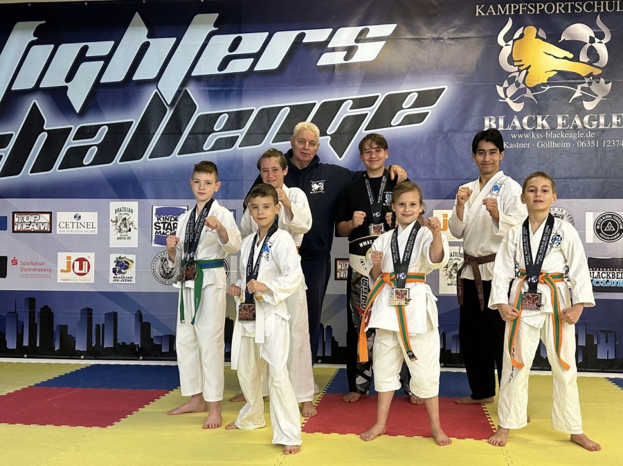 Am 22/23.11.2025 fand in Bregenz der World Cup der WMAC statt. Mit 2800 Starts aus rund 170 Sportschule aus über 40 Nationen, war es ein riesen Veranstaltung. Die Konkurrenz war sehr groß und das Turnier hatte ein sehr hohes Niveau. Die Black Eagles unter Trainer Jürgen Kastner waren schon Freitags angereist um alle Teilnehmer zu registrieren. Samstag Punkt 9.00 Uhr hieß es Ring frei. Auf 6 Flächen, einem MMA Ring, einem Boxring ging es dann zur Sache. Harvey Perkins hatte leider Pech und konnte die Vorrunden nicht überstehen. Teamkollege Kristian Kunz / Göllheim konnte sich in der Klasse bis 40 kg den 3. Platz sichern. Raziel Netter / Carlsberg hatte sich ebenfalls gut geschlagen und ebenfalls Bronze in seiner Klasse eingefahren. Saveliy Kozhusko / Göllheim, ebenfalls noch ein Anfänger mit viel Talent gewann Bronze in seiner Klasse. Enny Grams fand beim Pointfigth nicht in den Kampf und überstand die Vorrunden ebenfalls nicht. Lennox Cantstetter / Eisenberg lies keinen Zweifel daran, wer Herr im Ring war. Seiner erste Gewichtsklasse schlug er alles und gewann auch so den Meistergürtel und damit auch seinen dritten WM Gürtel seiner noch kurzen Laufbahn. In der höheren Klasse stand er dann nochmals im Finale und holte sich noch einen Vizetitel. Ein Highlight war auch Sebastian Knauss / Marnheim der so sauber und fehlerfrei alles auf dem Weg zum Finale gewann. Mit 8 Jahren erst sein zweites Turnier und dann direkt ein World Cup. Im Finale fehle dann eben die Erfahrung. Er wurde Vizeweltmeister mit einer wirklich sehenswerter Leistung.